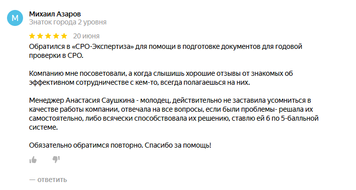 - Постоянное повышение квалификации сотрудников за счет участия в обучающих курсах, которые доступны только при условии членства копании в СРО.