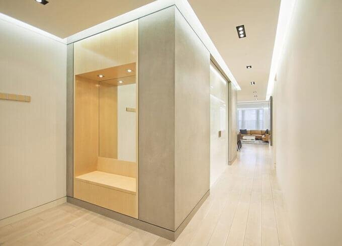 Используйте ленту умеренной яркости по периметру коридора, для экономии электроэнергии применяйте диммер для уменьшения яркости в ночное время.