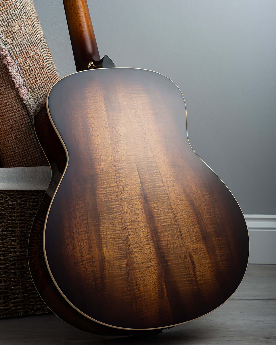 За последнее десятилетие, с приходом главного дизайнера Энди Пауэрса, компания Taylor совершила значительный эволюционный скачок. Пауэрс привнёс в звук и дизайн бренда новые идеи, представив инновационные модели с передовыми подходами к конструкции. Форм-фактор Grand Theater, дебютировавший в конце 2020 года, стал одним из таких прорывов. Он унаследовал уменьшенные изгибы от модели Grand Orchestra и получил новую систему распорок C-класса. Эта асимметричная консольная конструкция была разработана специально для того, чтобы максимизировать басовый отклик компактного корпуса, одновременно сохраняя интонационную точность революционной архитектуры V-класса.Производство GT налажено на заводе Taylor в Эль-Кахоне (Калифорния). Изначально модель выпускалась из ясеня и ситхинской ели, но в 2021 году ассортимент расширился. Появились варианты из восточно-индийского палисандра и ели (модели 811), а также наша героиня — роскошная K21e, задняя дека, обечайки и верхняя дека которой выполнены из эффектного гавайского коа.