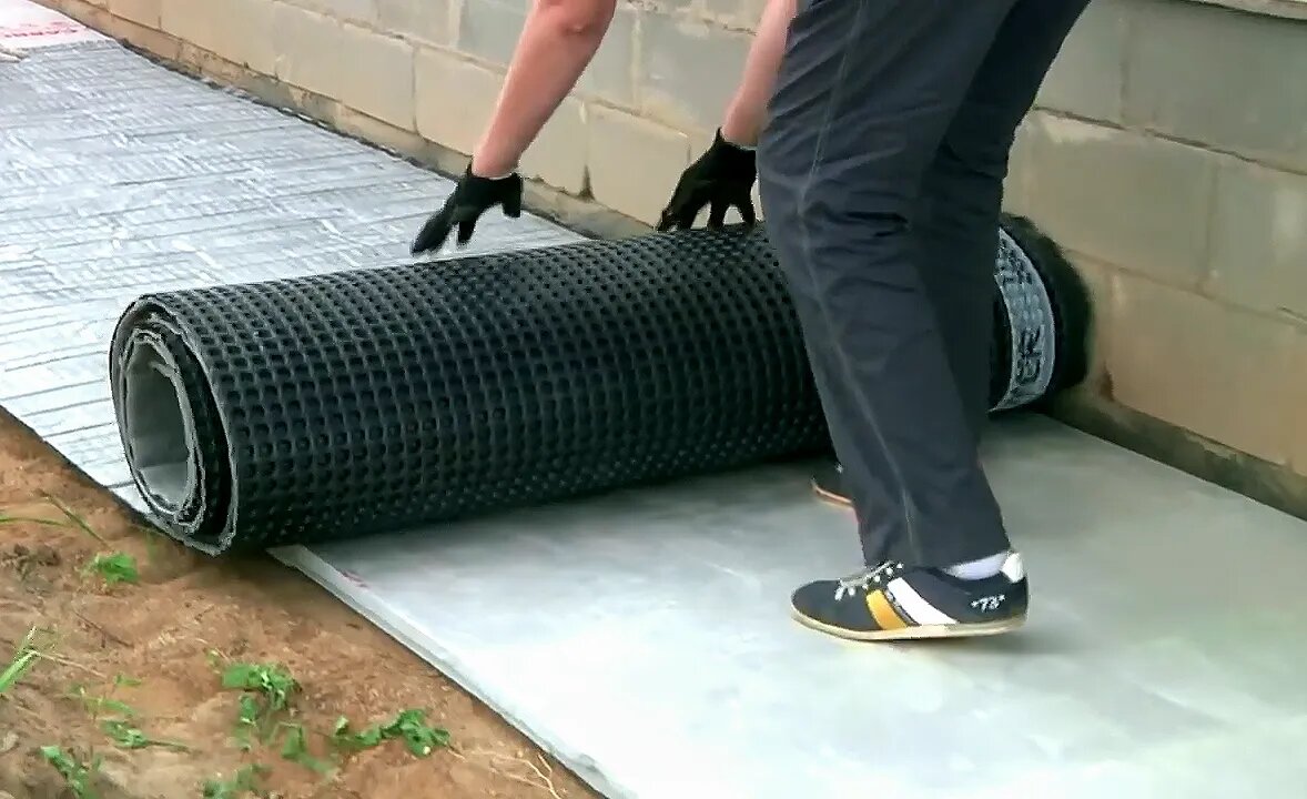 Качественная гидроизоляция — обязательный этап, защищающий утеплитель от грунтовой влаги.