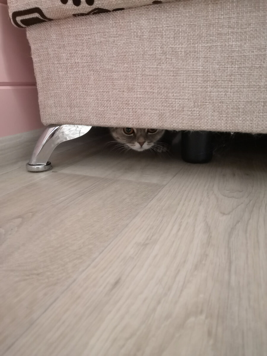 Алиска вчера впала в детство. Котенком она всегда ползала под диваном, а сейчас, как бы помягче сказать, стала слегка толстенькой и не пролазит. По крайней мере мы так думали. Бегала гоняла игрушку вчера и загнала под диван. И как с разбега "юркнула" за ней! Вот как они это делают, уму не постижимо, просто в лепешечку распласталась и протиснулась😀