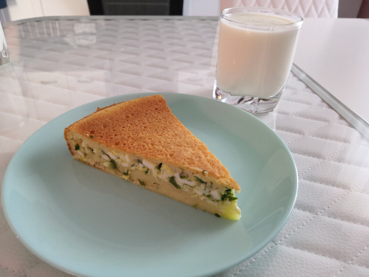 А еще у меня на окошке перерастал зеленый лук, нужно было срочно приводить его в дело. Сначала хотела испечь пирожки с луком и яйцом, Миша очень любит эту начинку. Но что-то мне стало так жаль времени на это (читай "лень")... Решила опробовать новый рецепт, заливной пирог на кефире. Ооооой ребят, какая вкуснятина получилась! А главное очень быстро. Плюс один классный рецепт в копилку, начинки опять же можно менять.