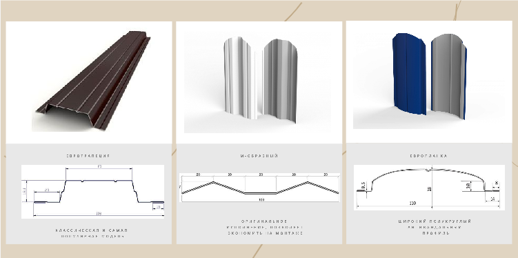 Штакетник имеет определенную форму, которую можно заметить, если посмотреть на него с торцевой стороны. На рисунке приведены базовые варианты исполнения.