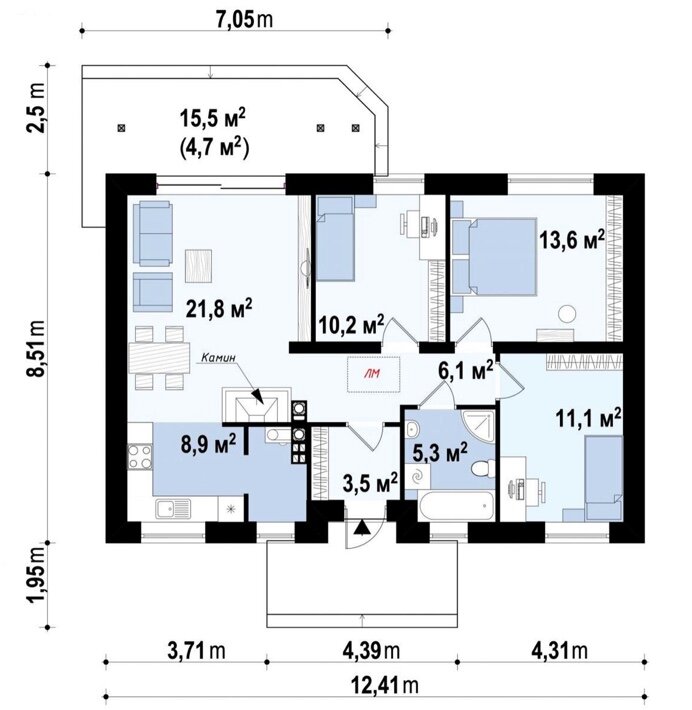Таким образом учли различные системы хранения, кабинет, мастерскую, вход в которую осуществляется сразу из дома, террасу… в общем все что необходимо конкретно нам.